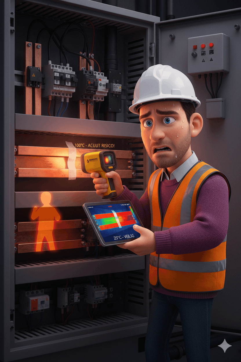 Stel je voor: je staat voor een geopende verdeelkast. Je pakt je warmtebeeldcamera, richt hem op de koperen rails en het scherm toont een veilige, koele temperatuur. “Niets aan de hand,” denk je, en je vinkt het onderdeel af.